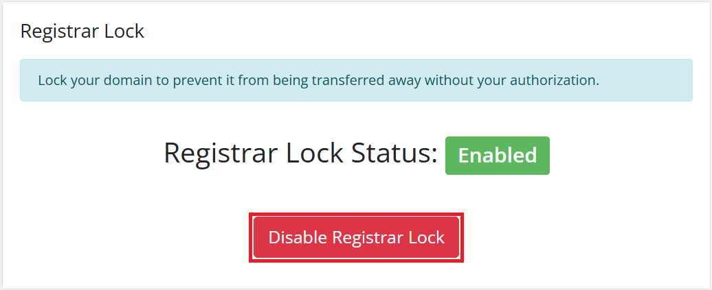 5. Select "Disable Registrar Lock" to unlock the domain name or "Enable Registrar Lock" to lock the domain.