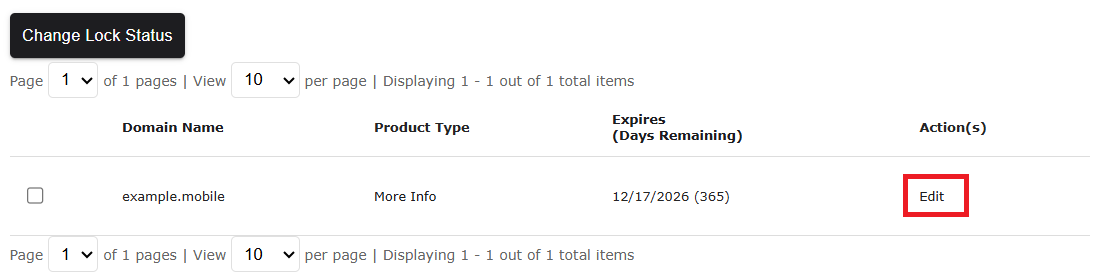 3. Click on any field next to the domain name (e.g., example.mobile) for which you wish to manage the DNS records.