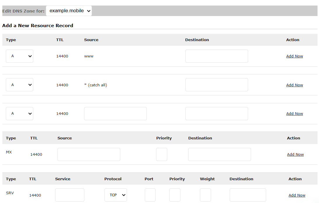 Managing DNS Records for a Standard .mobile Domain Name