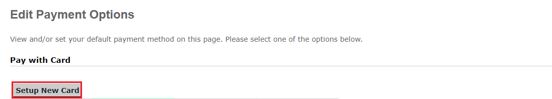 3. The Edit Payment Options page appears. Click on the Setup New Card button.