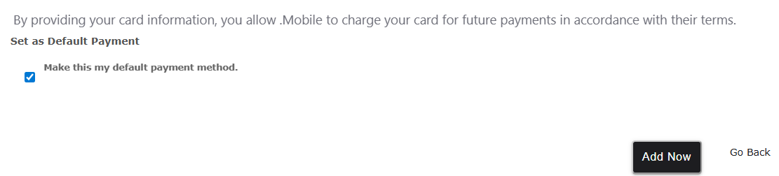 5. If you want to use this credit card as your default payment option for your account, check the Make this my default payment method. checkbox