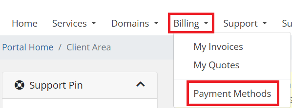 2. Once logged in, click on the Billing menu and select Payment Methods.