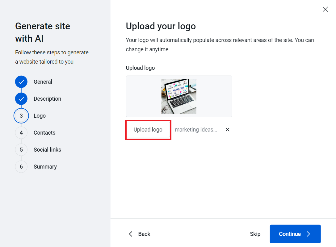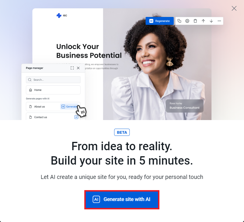 6. Click on the Generate site with AI button to start the AI Wizard.