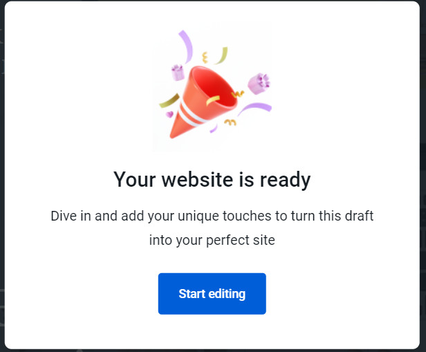 8. Once the website is ready you will see the Your website is ready pop-up. Click on Start Editing.