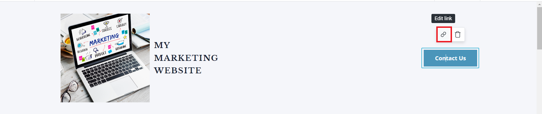 Some of the pages generated might contain CTA buttons, which is best practice to be customized for your needs. To do that, locate the CTA button and click on it. The Edit Link option is displayed.