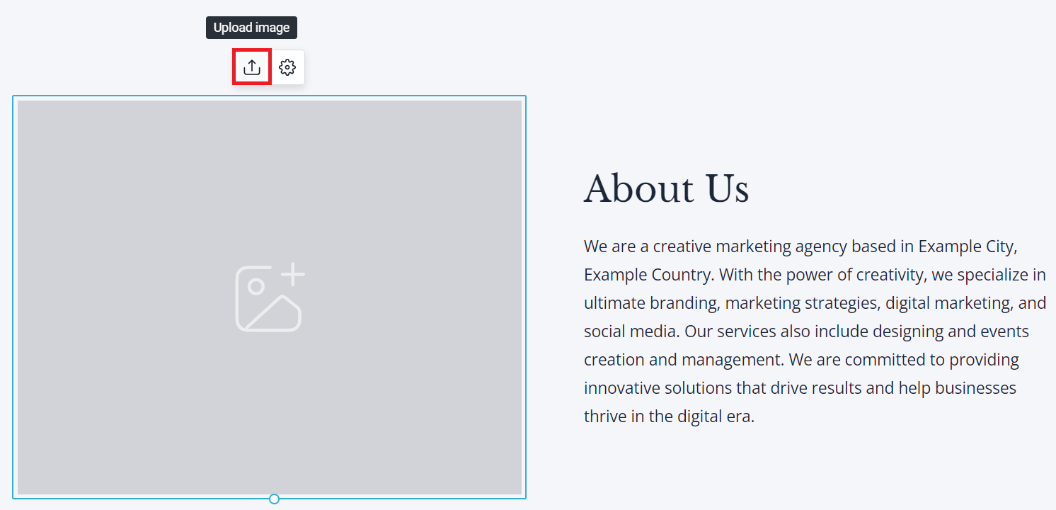 9. You will be able to review your website and make any changes if needed. Note that you will need to change the images on your website. To do that select any image on the website and click Upload Image.