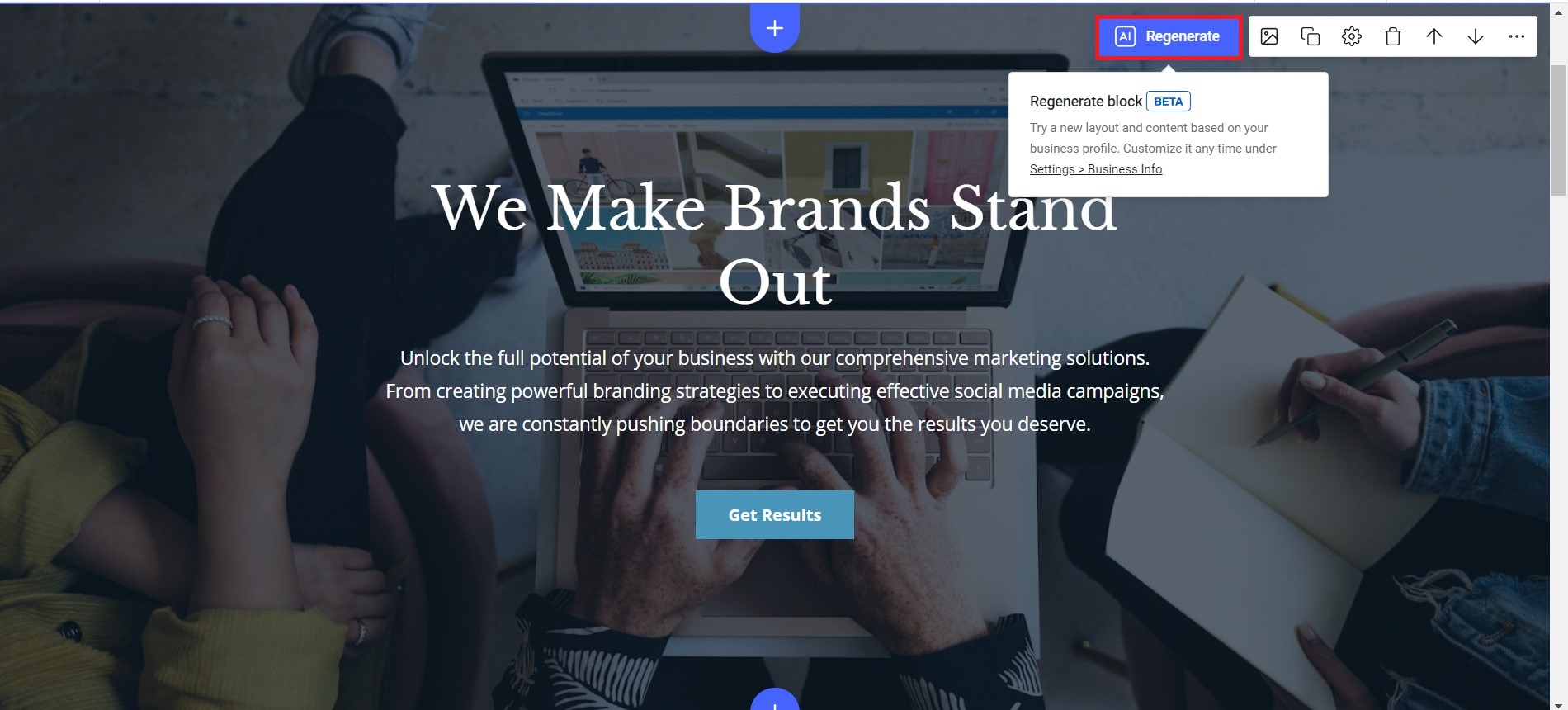 10. There is an option to AI Regenerate any block on the website. To do that, hover over the block and click on the AI Regenerate button.