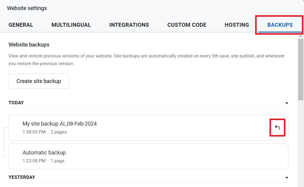 If you have an existing backup of your website, please follow the steps below to restore your website using the integrated restore option from within the Website Builder panel.